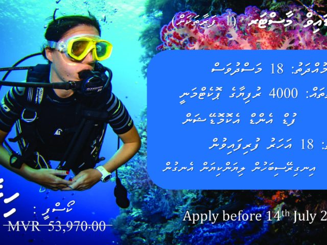 Kurinbee Youth Movement (KYM) declare an opportunity to complete a Padi dive master course for youth. Normal course fee for a padi dive master course is MVR 53970/-. Hence KYM …